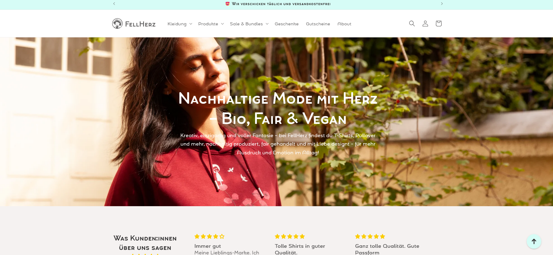 Die Website von FellHerz besticht durch ein minimalistisches und responsives Design mit einem übersichtlichen Hauptmenü und Handlungsaufforderungen unter „Sale“, „Bundles“ und „Gutscheine“. Sie läuft über HTTPS, garantiert SSL-Verschlüsselung und lädt Bilder schnell. Obwohl das Einkaufserlebnis sehr flüssig ist, könnte es von einem Blog oder einem Stilbereich profitieren, um zusätzlichen organischen Verkehr anzuziehen und die Long-Tail-SEO zu verbessern.